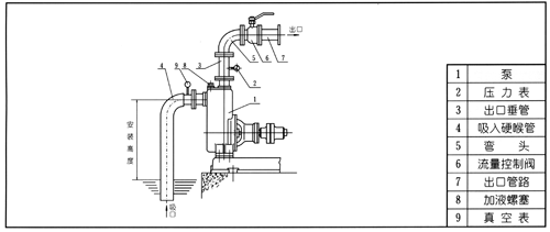 A.吸人口的安裝高度盡量不超過5米,在條件許可時,吸人口的安裝高度應盡可能地低于油庫儲油面,并盡量縮短吸人管的長度,少裝彎頭,這樣有利于縮短自吸時間,提高掃艙功能。