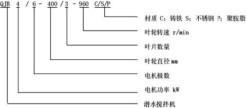 【不銹鋼潛水?dāng)嚢铏C(jī)QJB型】型號(hào)意義: