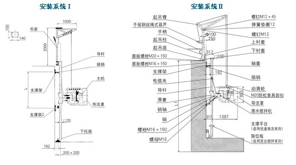 【不銹鋼潛水?dāng)嚢铏C(jī)QJB型】安裝系統(tǒng):