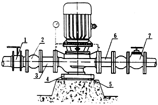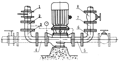 1.進(jìn)口閥門(mén) 2.柔性接頭3.直管4.聯(lián)接板 5.隔振墊 6.直管 7.出口閥門(mén) |