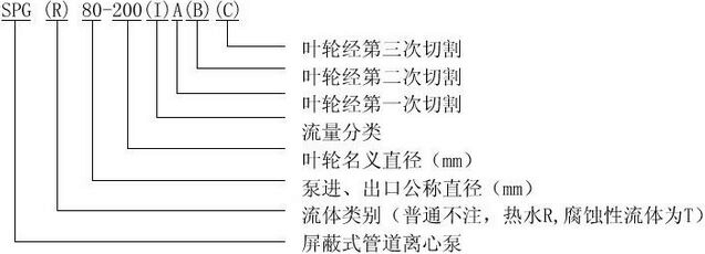 SPG系列立式管道屏蔽泵型號(hào)意義: