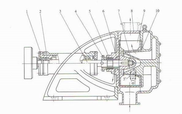 8-泵體(進(jìn)出口呈水平位置):9-葉輪:10-大蓋