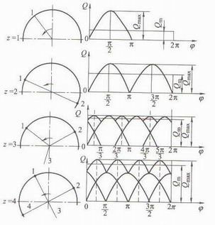 往復泵瞬時流量不均勻系數(shù)&Q1、&Q2與缸數(shù)、作用數(shù)、