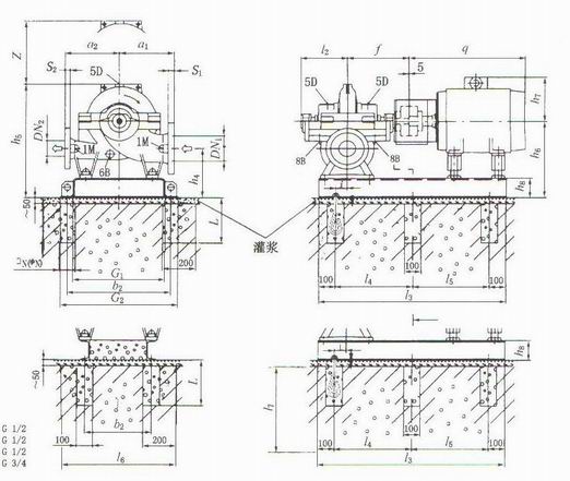 PCP-O-□□□增壓泵機組外形及安裝尺寸如圖6-27所示,外形尺寸數(shù)據(jù)見表6-6.