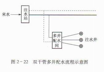 注水站工藝流程為:來(lái)水井站-計(jì)量-水質(zhì)處理-儲(chǔ)水罐-進(jìn)泵加壓-輸出高壓水,如圖2-24所示。