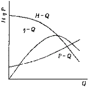 1.1 離心油泵的性能 揚程-流量、軸功率-流量和效率-流量曲線表示離心油泵的水力性能,一般用只能采用實驗的方法才能得到性能,見圖1。本文試圖分析出*優(yōu)工況的滑移系數(shù)、水力效率、容積效率、機械效率和水力損失系數(shù)等參數(shù)。