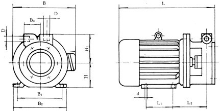 1W系列直連式單級旋渦泵安裝尺寸圖: