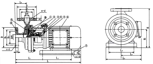 S型玻璃鋼離心泵結(jié)構(gòu)圖及安裝尺寸