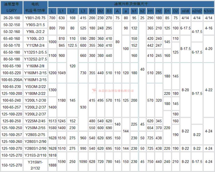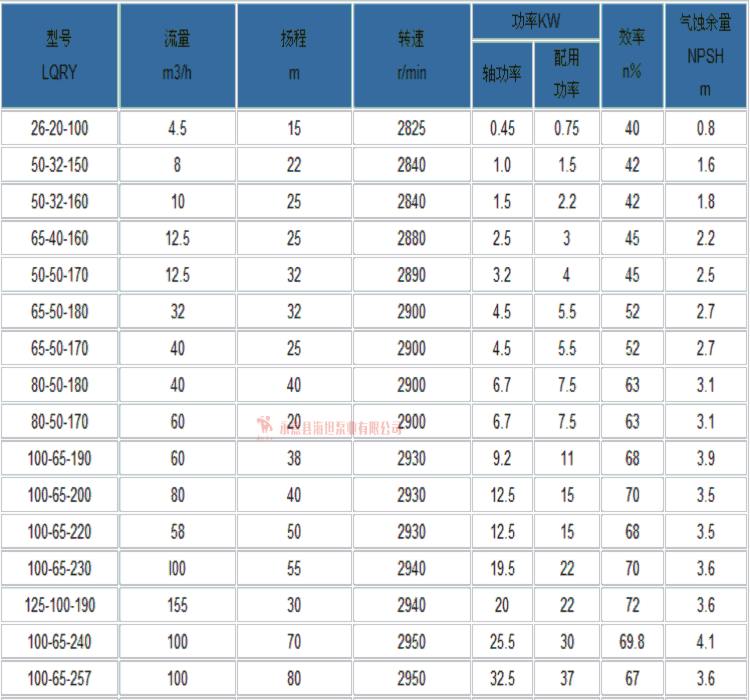 【LQRY型熱油泵(導熱油泵)】性能參數: